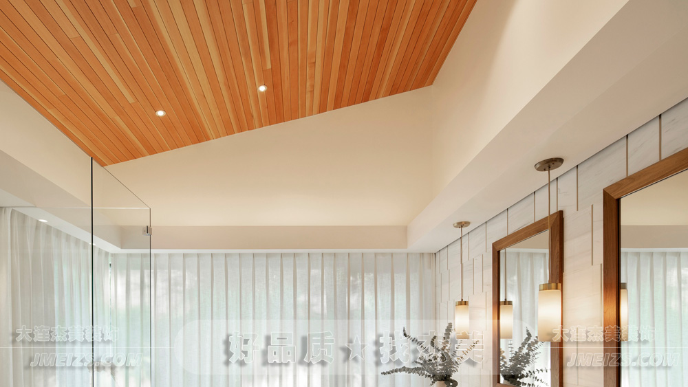 天花板上的木质条板,