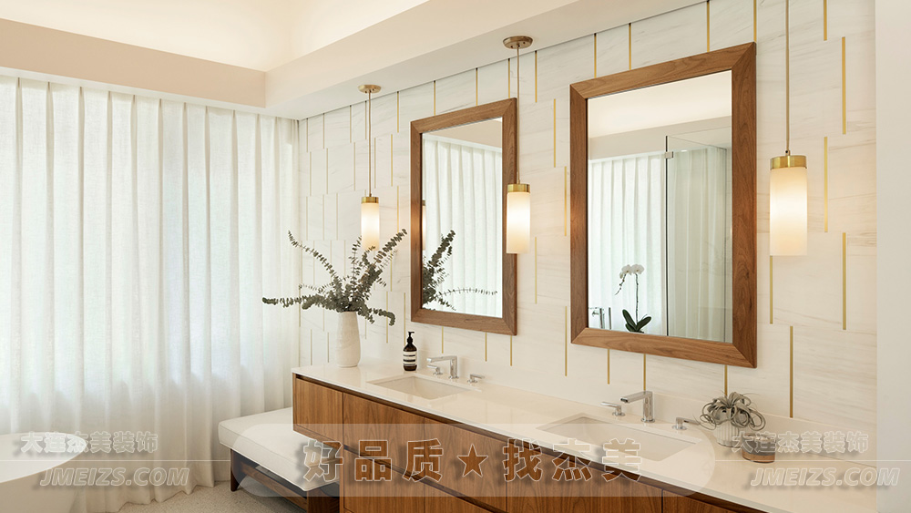 梳妆区采用了长条的洗手台和大面积的镜子,